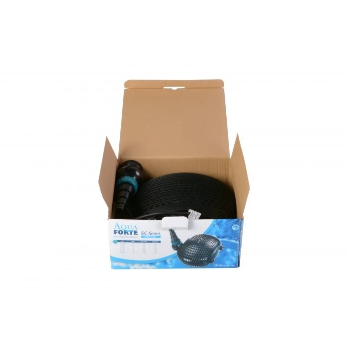 De pomp bevat geen koperen onderdelen en is voorzien van slijtvaste keramische as. De pomp schakelt automatisch uit wanneer er geen water in de rotor zit. Bij blokkade van de waaier zal de pomp in een “lock” positie keren waardoor hij geen stroom verbruikt en wacht tot de blokkering weer is verholpen. Dit voorkomt het doorbranden van de motor. Kortom, de Aquaforte EC vijverpompen zijn interessant geprijsde vuilwaterpompen voor beeklopen, watervallen, fonteinen, filters, etc. Tot slot is de pomp geschikt voor droge opstelling (inlaat moet dan onder de waterspiegel worden geïnstalleerd) en kan de pomp vuildeeltjes tot 6mm verpompen.