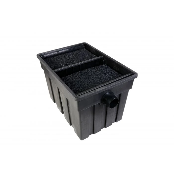AquaForte introduceert gunstig geprijsde filter met UV-C lamp (PL lamp). De filters worden compleet met filtermateriaal (bioringen en filterschuim) en aansluitingen geleverd. Inlaat: slangtule 20/25/32/40. Uitlaat: 75mm. Maximale vijverinhoud zonder visbezetting: 25m³ bij de 25.000, 18 m³ bij de 18.000 en 12m³ bij de 12.000. Maximale vijverinhoud met visbezetting: 10m³ bij de 25.000, 7,5m³ bij de 18.000 en 5m³ bij de 12.000.