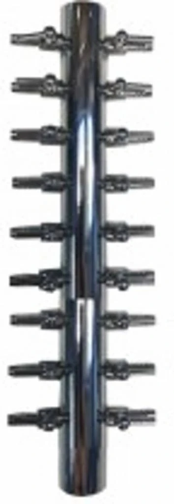 Luchtverdelers voor 4mm 18 uitgangen met kraan messing. Aansluiting vanaf luchtpomp 18 mm.