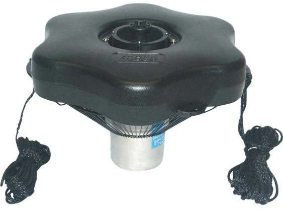 Deze Kasco drijvende fontein wordt standaard geleverd met 5 verschillende fontein nozzles! De drijvende fonteinen van Kasco hebben een uniek ontwerp wat hun producten zeer betrouwbaar en duurzaam maakt. Alle metalen onderdelen van deze fontein zijn zeewaterbestendig RVS. Verder is dit product voorzien van een pomp, verwisselbare nozzles, drijver, 15 meter ankerlijn en 10 meter kabel. Deze is met 1,5mm² kabel tot 30 meter te verlengen met de Aqua-Safe waterdichte kabelverbinder. De drijver is voorzien van ogen voor eventuele verlichting.