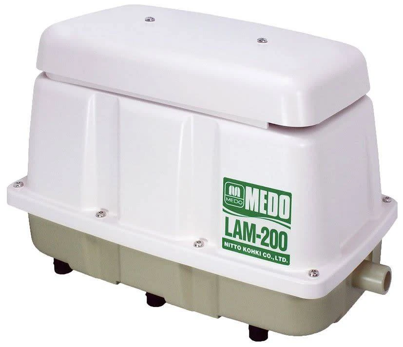 De Nitto Luchtpomp is een zeer betrouwbare, energiezuinige, geruisloze en olievrije luchtpomp. Deze Nitto Luchtpomp werkt op basis van een piston i.p.v. een rubber membraan. Hoge luchtdruk tot maximaal 2 – 2,5 meter diepte (afhankelijk van het model). Let op: de maximale tegendruk kan, door lange afstand tot uitstromer, kleine diameter luchtslang, oplopen tot meer dan 2 meter, ongeacht de vijverdiepte. Advies: gebruik een manometer bij de uitgang van de controle.