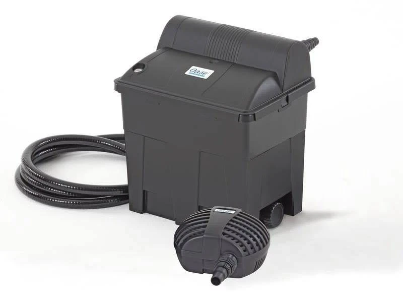 Deze filterset BioSmart 7000 van Oase betaat uit een filterpomp met een capaciteit van 2,5Â m_ per uur, 3 meter vijverslang met een diameter van 19 mm en een doorstroomfilter. De combinatie van mechanische-biologische reiniging en de zeer effectieve UV-C techniek leveren een heldere en gezonde vijver op. In de verschillende mousses worden de giftige stikstoffen in ammoniak en nitraat omgezet in ongevaarlijke eindproducten zoals gasvorming stikstof. De vervuilingsgraadindicator geeft het juiste tijdstip voor de reiniging aan. Dit is eenvoudig te doen zonder demontage met behulp van de handige reinigingshandgrepen. De andere indicator geeft tevens de temperatuur van het vijverwater aan.