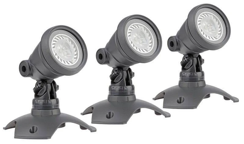 De LunAqua LED van Oase bestaat uit 3 POWER LED spots met een verstelbare kop, een 12 Volt trafo, rubberen slangleiding en drie grondpennen.