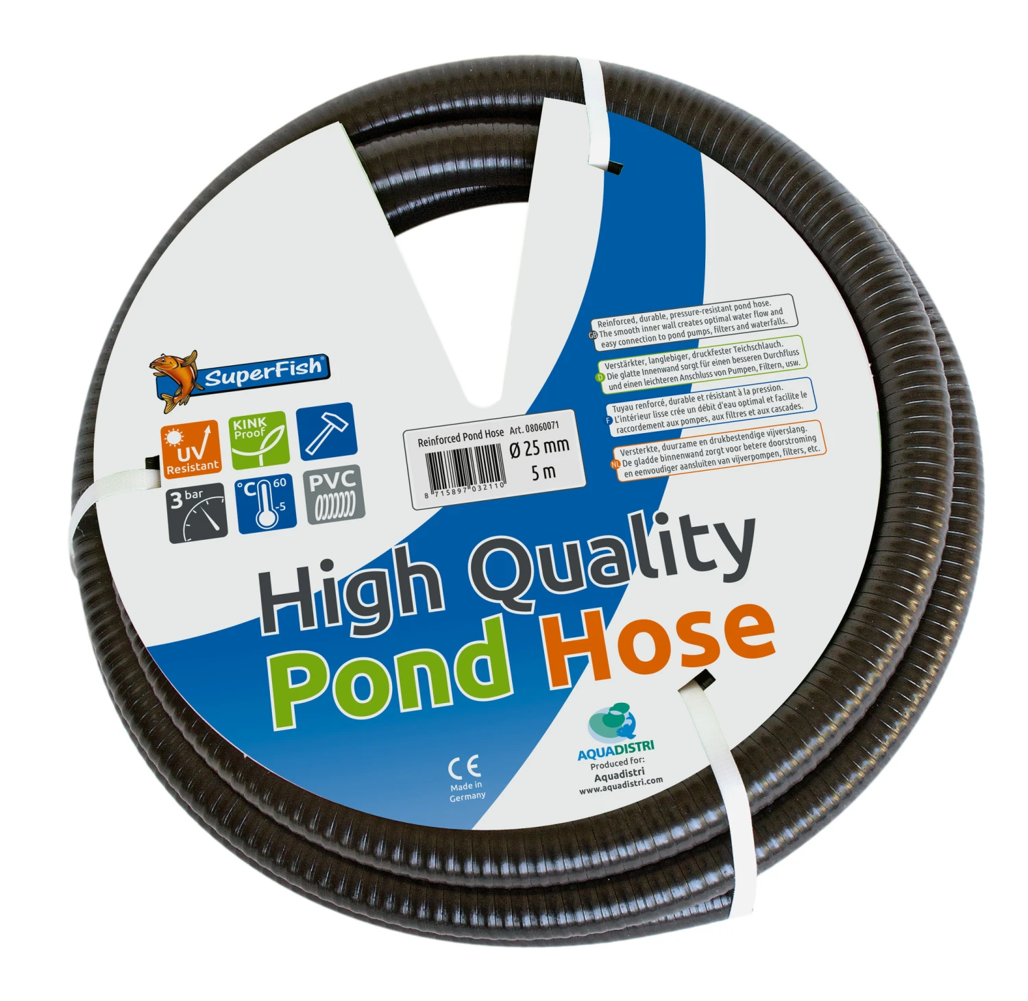 Hoge kwaliteit gewapende vijverslang met gladde binnenwand, voor het gemakkelijker aansluiten van vijverpompen op vijverfilters en watervallen.