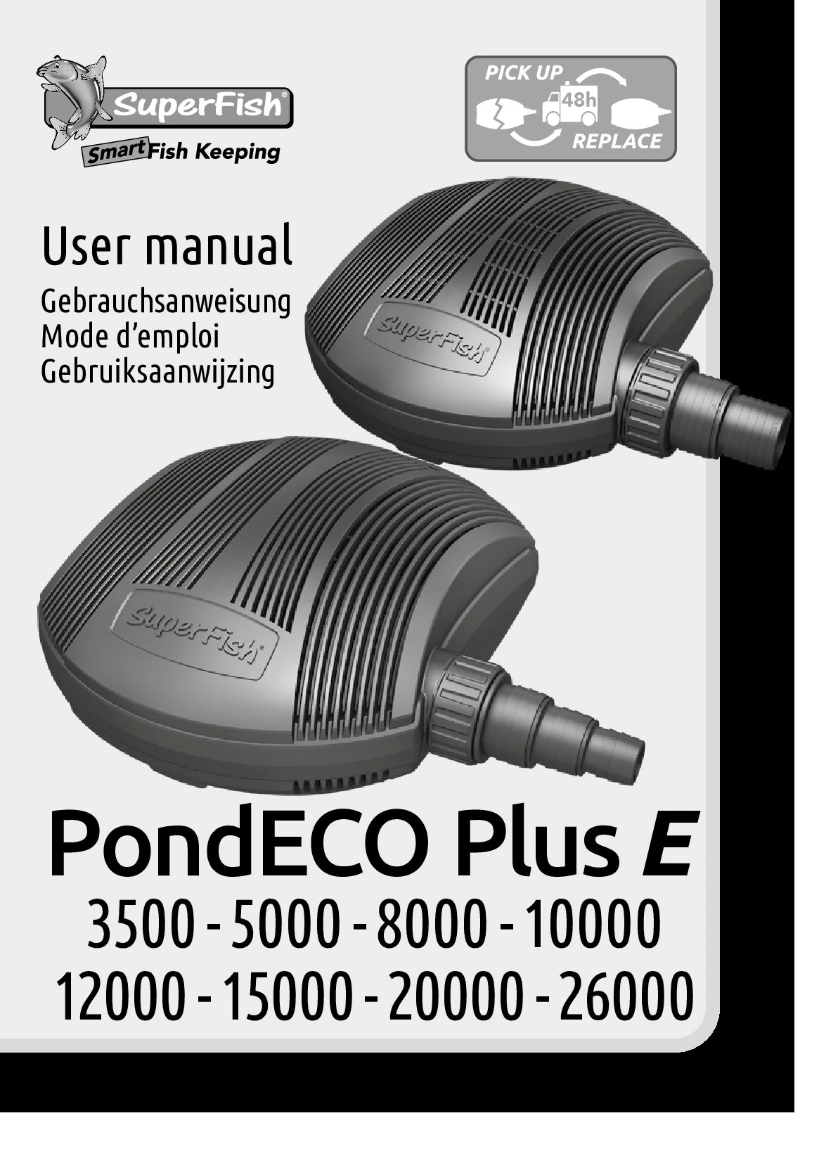 De nieuwste vijverpomp van SuperFish is de SuperFish Pond Eco Plus E 20000. Wij van Vijverbenodigdheden.nl zijn onder de indruk van de prestaties van de SuperFish Pond Eco Plus E 20000. De nieuwste vijverpomp van SuperFish beschikt over 2 jaar garantie en over een pick up en return garantie. Daarnaast staat deze nieuwe techniek garant voor het laagst mogelijk energieverbruik (ca. 5 Watt per 1.000 L/h). Dit is de vijverpomp die een groen label verdient!